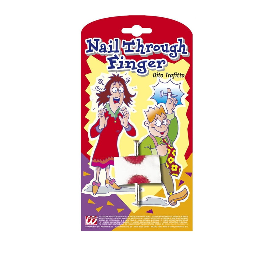 Pour le poisson d'avril ou durant Halloween faites une petite blague a votre entourage avec ce faux clou dans le doigt. Vous simulerez un accident lorsque vous bricoler. Pour un effet plus réaliste il y a même du sang.