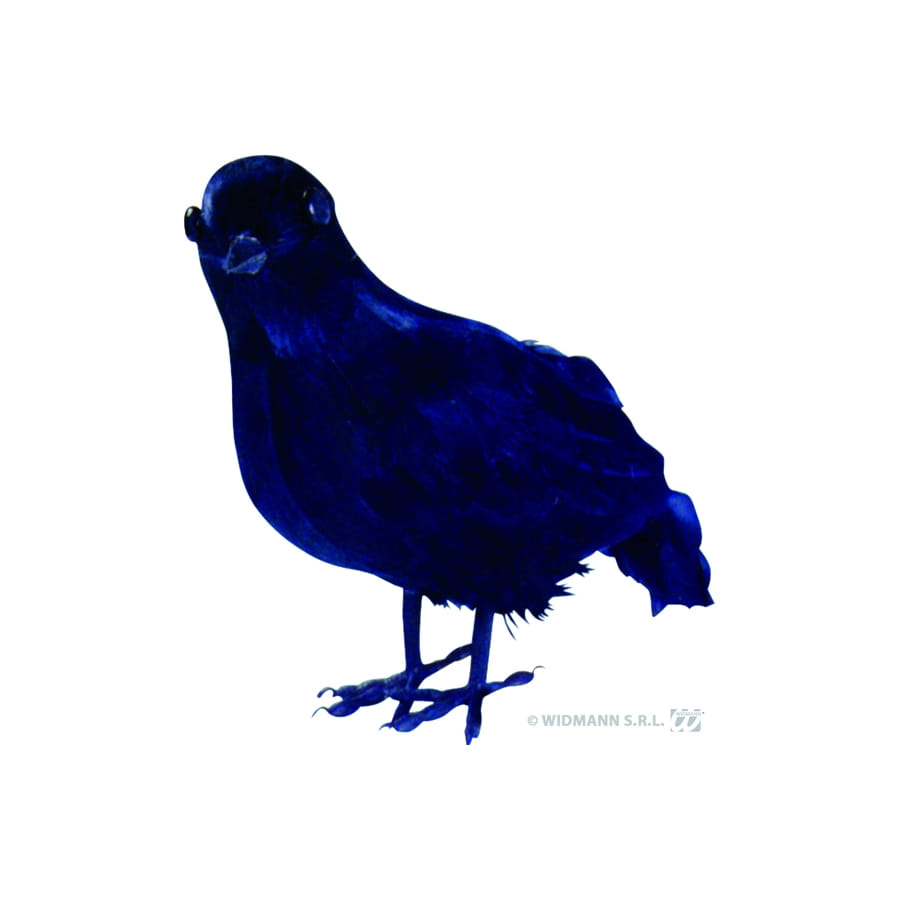 Faux corbeau à plumes de couleur noire avec des nuances bleutées. Il mesure 25 centimètres. Servez-vous-en comme accessoire de décoration pour une fête gothique.