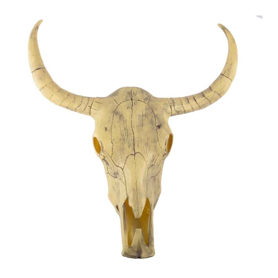 Les grands chasseurs sont toujours fiers d'afficher leur capture chez eux. Avec ce faux crâne de bison, vous créerez un décor du style western dans votre salle de séjour. Ce modèle est en pvc. Il est de couleur beige et fait une dimension de 67 cm x 68 cm x 13 cm. Vous pourrez l'accrocher à un mur ou tout simplement le poser sur un meuble.