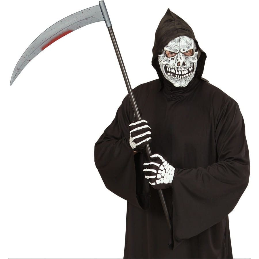 La faux de 107 cm ensanglanté pour adulte est en plastique.