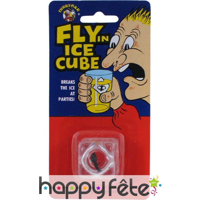 Accessoire de farce et attrape constitué d'un faux glaçon avec mouche à l'intérieur. Ajoutez ce glaçon aux verres de vos invités pour leur faire croire qu'une mouche y est tombée. Leur réaction sera exquise!