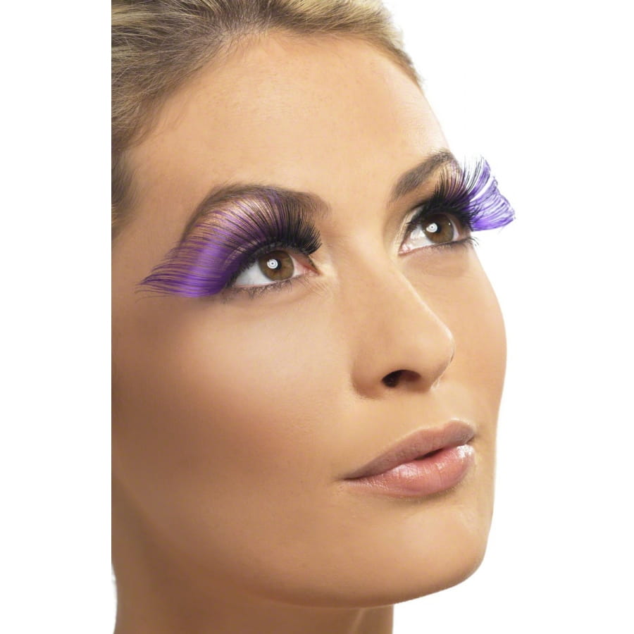 Offrez-vous un relooking un peu spécial à l'occasion de votre enterrement de vie de célibataire. Vous allez pouvoir métamorphoser vos yeux à l'aide de cette paire de faux cils noirs et violets extra larges. Leur pose se fait sans problème à l'aide d'une colle incluse dans l'article. Leur longueur est considérable mais ils sont magnifiquement recourbés pour un résultat des plus envoûtants !