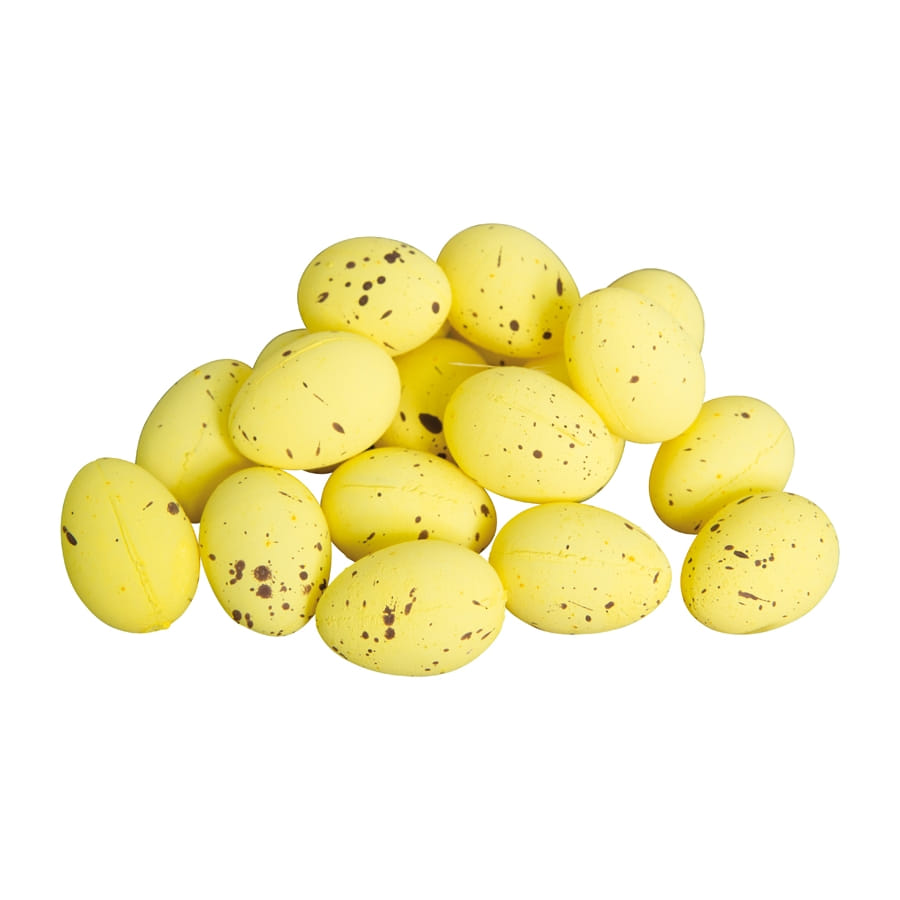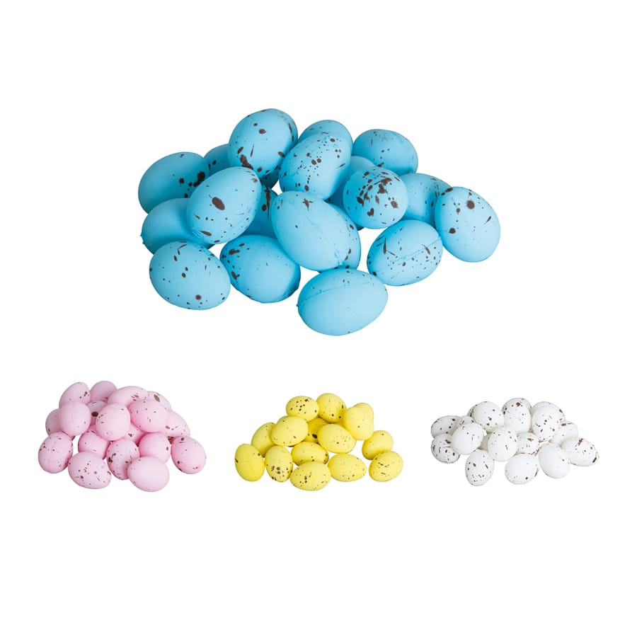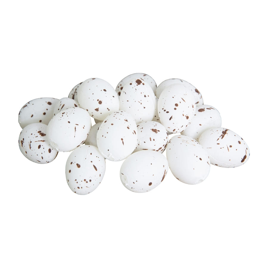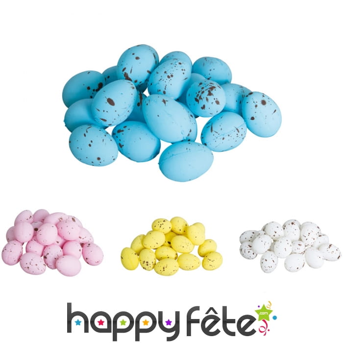 Le lot de 20 oeufs de 3.5 x 2.5 cm est fourni avec de la paille.