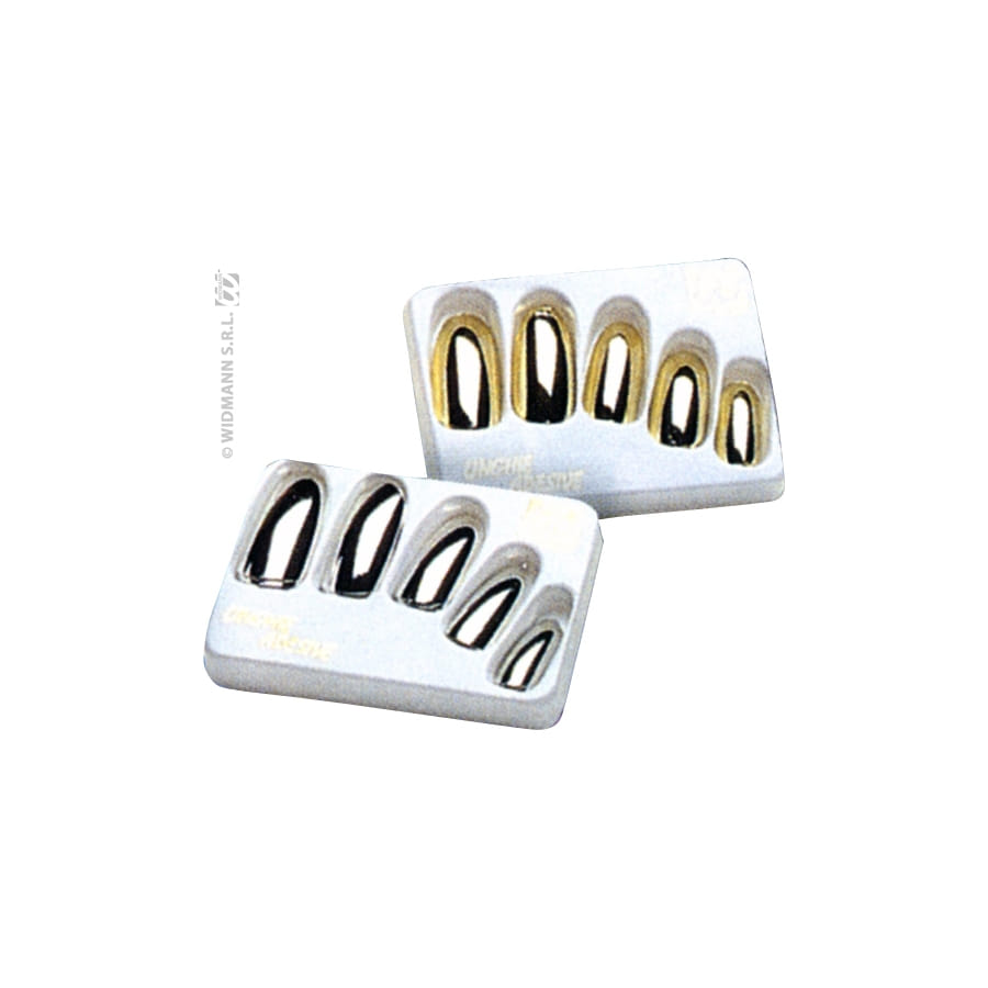 Pour une soirée pourquoi ne pas peaufiner votre tenue avec ces faux ongles.De couleur argenté ils sont aussi disponible en doré ces faux ongles viennent dans une boite de 15 avec 30 adhésifs. Vous pourrez les réutiliser grace à de la colle.