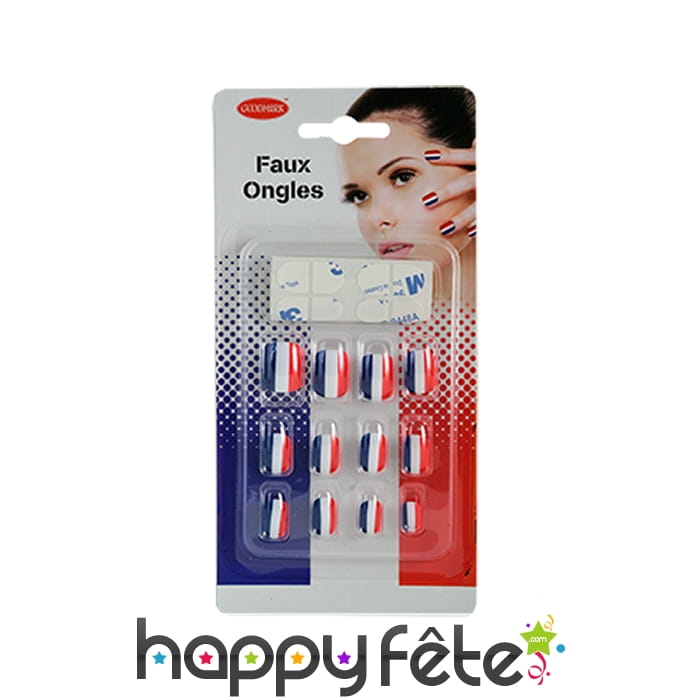 Compléter votre maquillage de supporter avec les faux ongles Bleu Blanc Rouge.