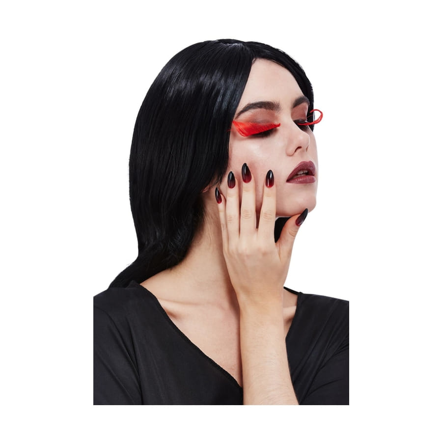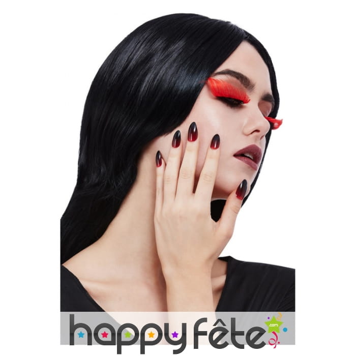 Sublimez votre maquillage et faites des envieuses parmi les invités d'une soirée d'Halloween, en arborant les faux ongles et faux cils gothique noirs et rouges.