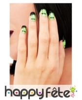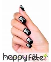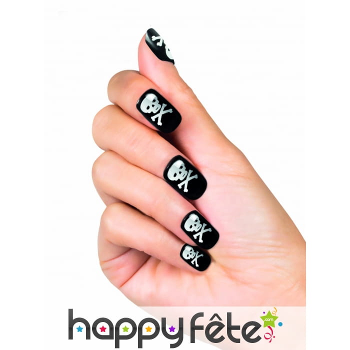 Ces ongles sont recouverts de vernis noir avec un crâne de squelette blanc, emblème de la piraterie.