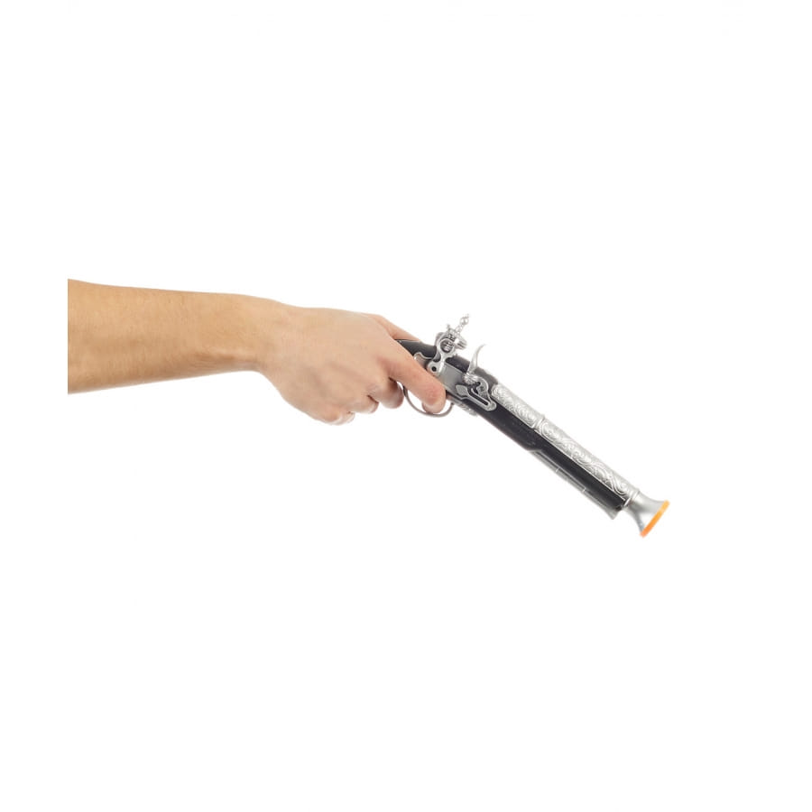 Idéal pour compléter un costume de pirate pour les fêtes déguisées ou un anniversaire, ce petit faux pistolet de pirate pour enfant fera le bonheur des petits garçons. Cet accessoire est conçu en plastique et mesure environ 30 cm. Il est de couleur noir et gris avec un embout jaune. D'autres accessoires de pirate sont à voir sur le site.