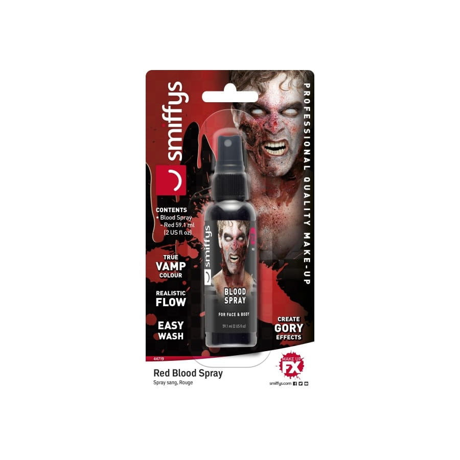 Les effets spéciaux sont de plus en plus appréciés pendant la période d'Halloween. Aimez-vous faire peur à vos amis ? Emparez-vous sans plus attendre d'un faux sang en spray. Cet article vous propose du faux sang ultra réaliste dans un flacon de 59,14 ml. Ce produit de couleur rouge est à utiliser pour fignoler votre déguisement d'Halloween.