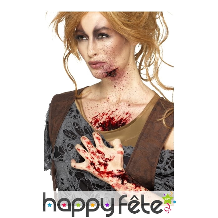Choisissez le massacre comme thème pour halloween. De ce fait, essayez les faux sang rouge noir infecté, effet réaliste. Un article contient environ 20g de ce liquide macabre. Ce cosmétique reproduit une sorte de caillot de sang noirci, à éparpiller sur le visage, le corps, ou encore les vêtements. Il donne l'impression de blessures qui s'infectent et de jets de sang une fois sur la peau. Avec un tel cosmétique, le réalisme de votre costume d'halloween ne fera plus de doute !