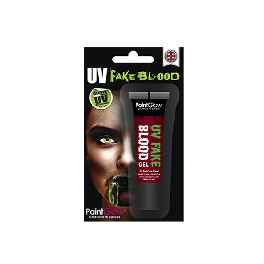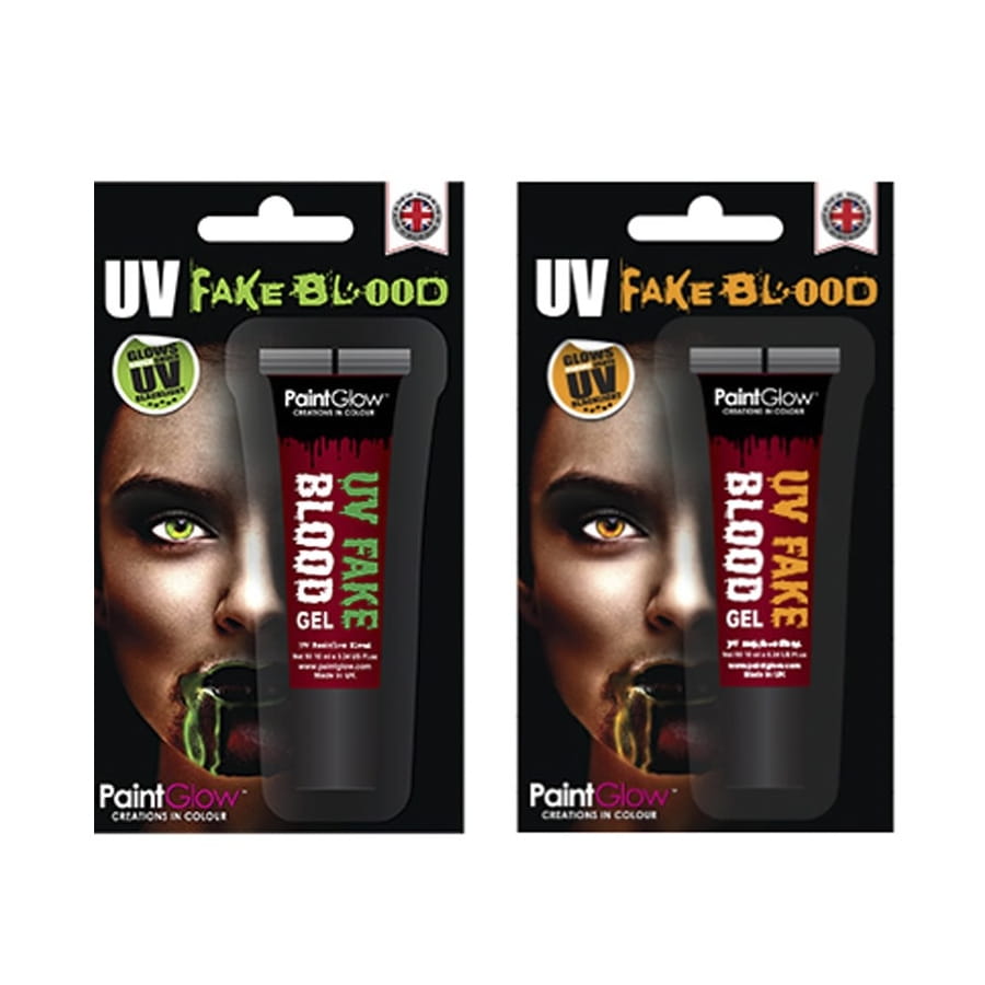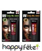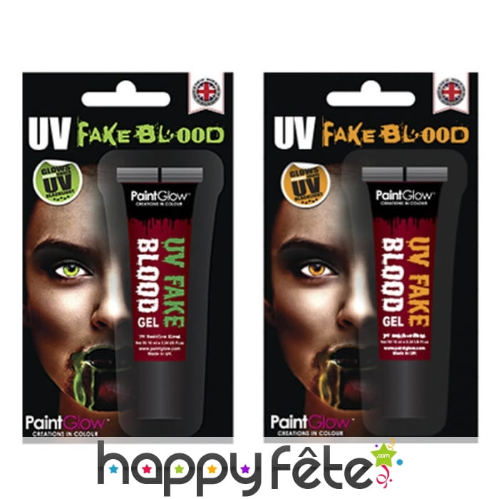 Impressionnez vos amis pendant la nuit d'Halloween ou lors d'une soirée horreur en utilisant ce faux sang UV phosphorescent en gel pour adulte. Offert en tube de 10 ml sous blister, le gel existe en vert et orange, des couleurs qui brillent dans le noir ou sous la lumière UV.