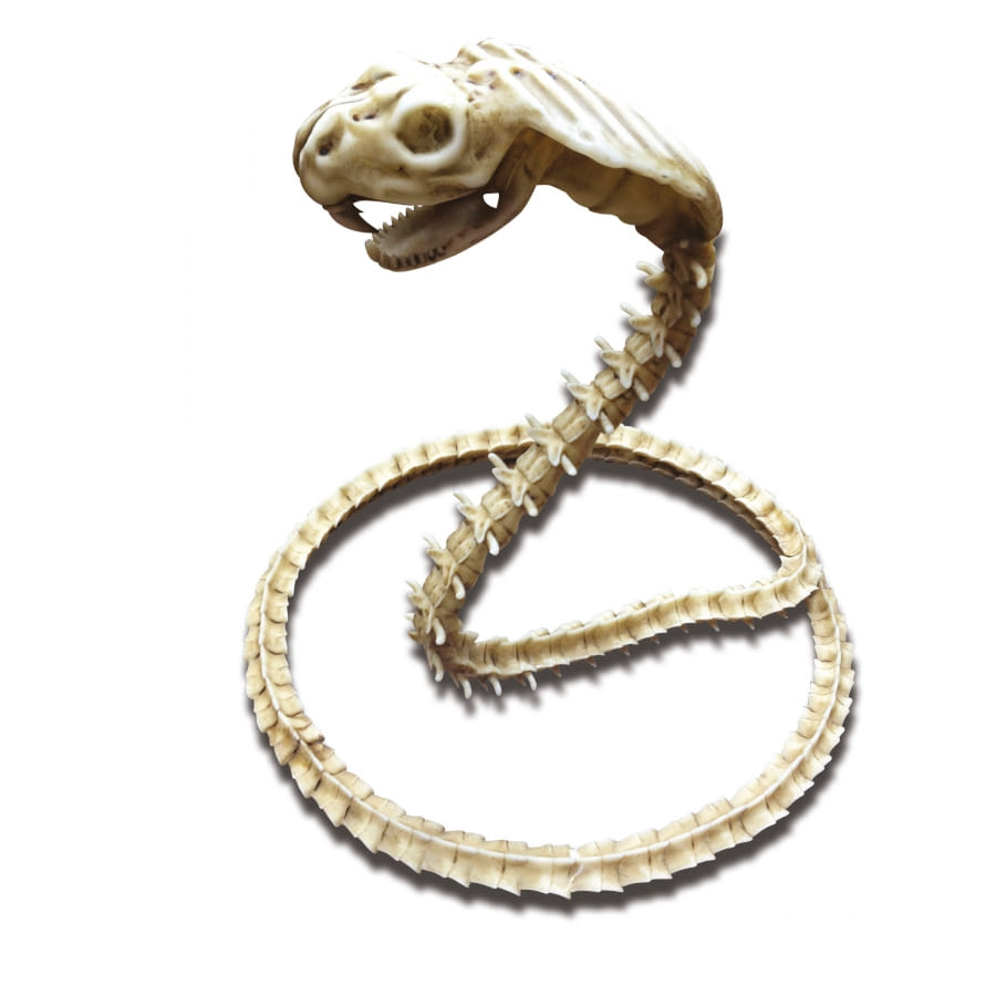 De couleur beige, cette décoration représente les restes d'une célèbre espèce de serpents.