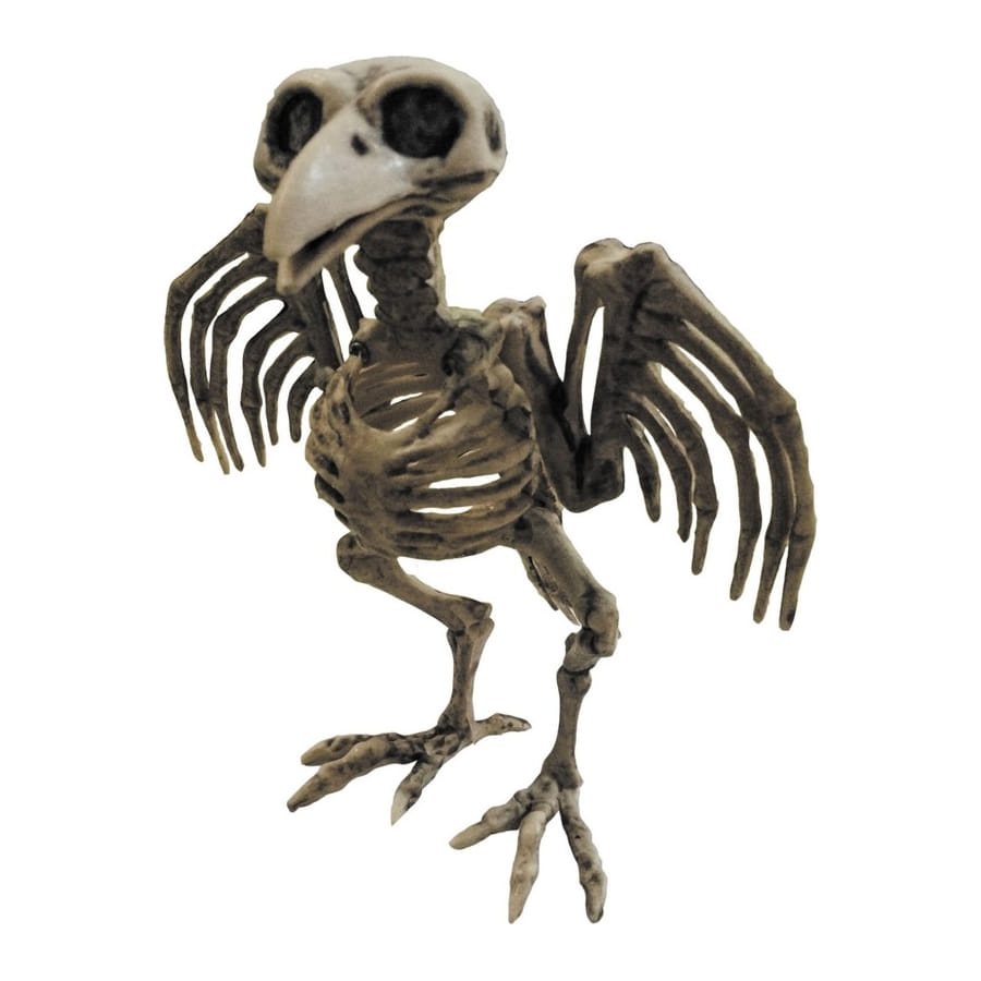 Le faux squelette de corbeau de 21 cm est en plastique rigide beige.