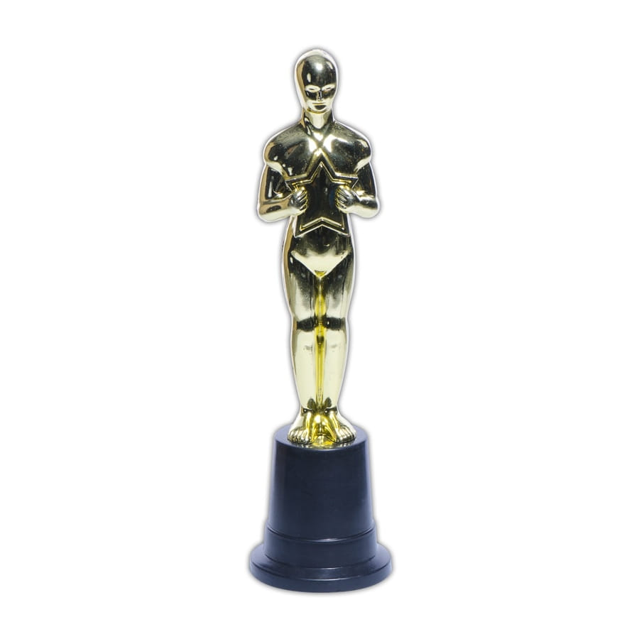 Ce faux trophée des Oscars représente un homme sur un socle, debout et tenant une étoile. Il mesure 22 cm de haut et 6 cm de diamètre, et adopte une magnifique couleur dorée pour un effet plus réaliste. Voilà une décoration originale pour une soirée Cinéma inoubliable !