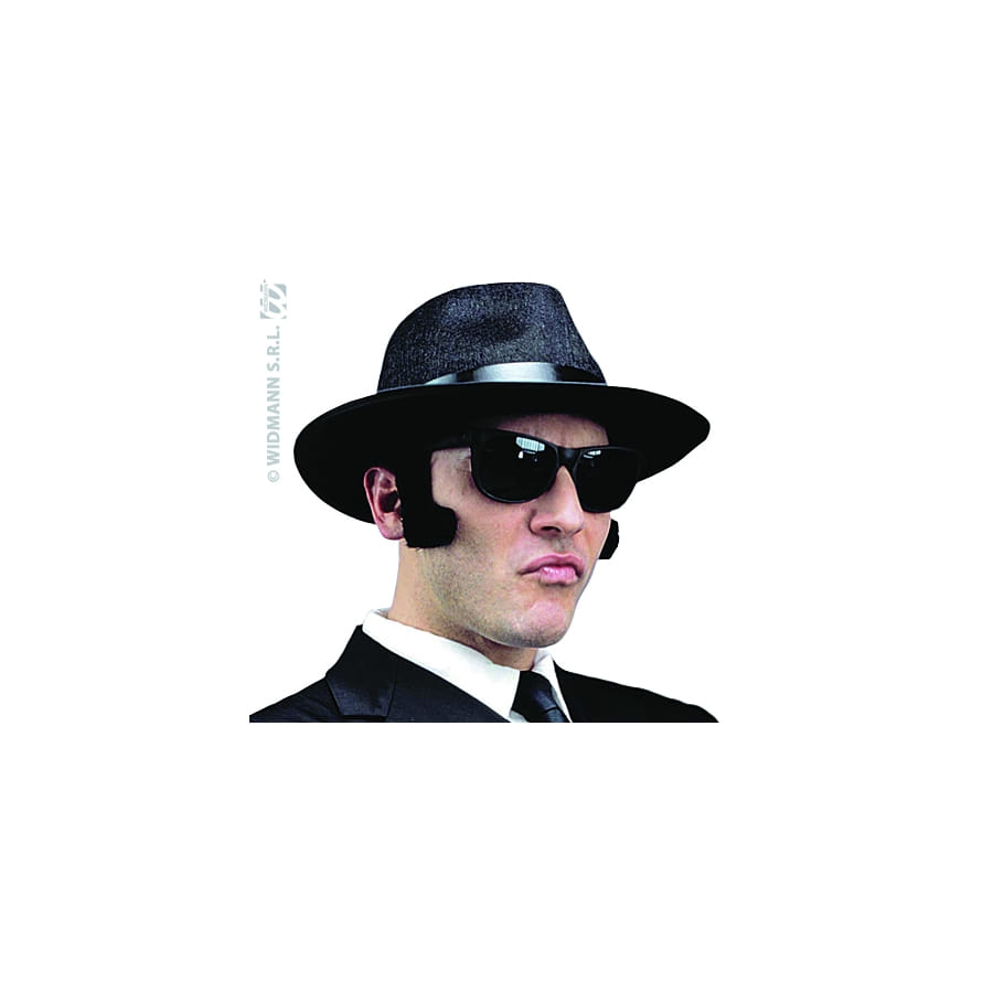 Favoris auto-adhésifs de Blues Brothers. Cet accessoire pour homme est disponible en couleur noir uniquement. Il est parfait pour vous déguiser en membre d'anciens groupes de blues et de soul.