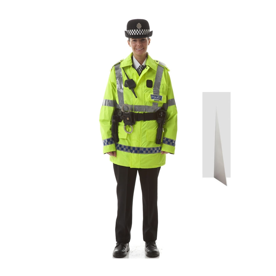 Cet article femme policier taille réelle en carton consiste en une figurine en carton plat de 165 cm de haut, représentant une policière avec un beau sourire. Dans cette figurine, la policière porte un uniforme jaune, un pantalon noir et un chapeau, ainsi que divers équipements de policier. Sachez que vous trouverez également sur Happyfete un homme policier en carton taille réelle.