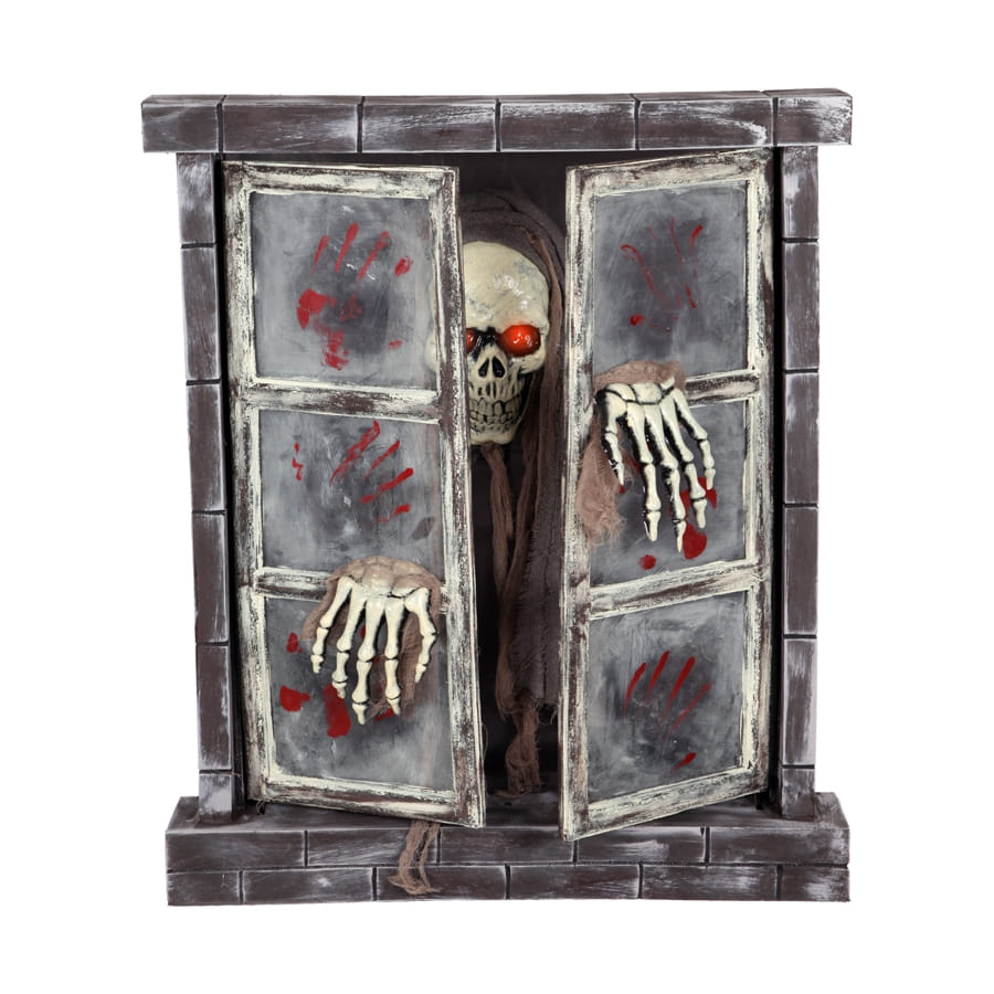Frayeur garantie ! Cette décoration terrifiante représente une fenêtre animée, réagissant au bruit. Les volets s'ouvrent sur une musique funèbre et laissent apparaitre une tête de mort avec des yeux rouges lumineux, très spectaculaires, sans parler des tâches de sang qui sont présentes sur les soi-disant vitres de la fenêtre. Les dimensions sont de 72 x 84 cm. Optez pour cet article si vous voulez transformer votre maison en un véritable manoir hanté le soir d'Halloween.