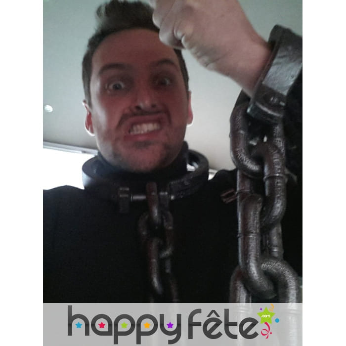 Fers de bagnards noirs pour le cou et les poignets. Cet accessoire vous donnera l'air d'un vrai condamné pour un carnaval.