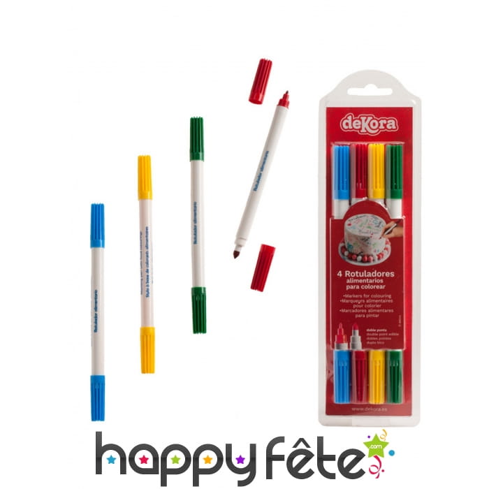 En matière de décoration de gâteau et autres douceurs, laissez s'épanouir votre imagination grâce à nos feutres alimentaire, 4 coloris.