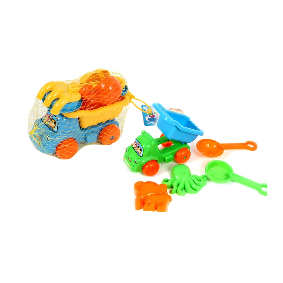 Pour vos longues journées à la plage, pour occuper les plus petits, achetez-leur ce filet avec un camion de plage, moules et pelles. Le tout est de couleur verte, bleue et orange et comprend un mini-camion, deux moules et deux pelles. La couleur peut varier de la photo affichée.