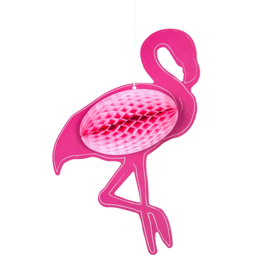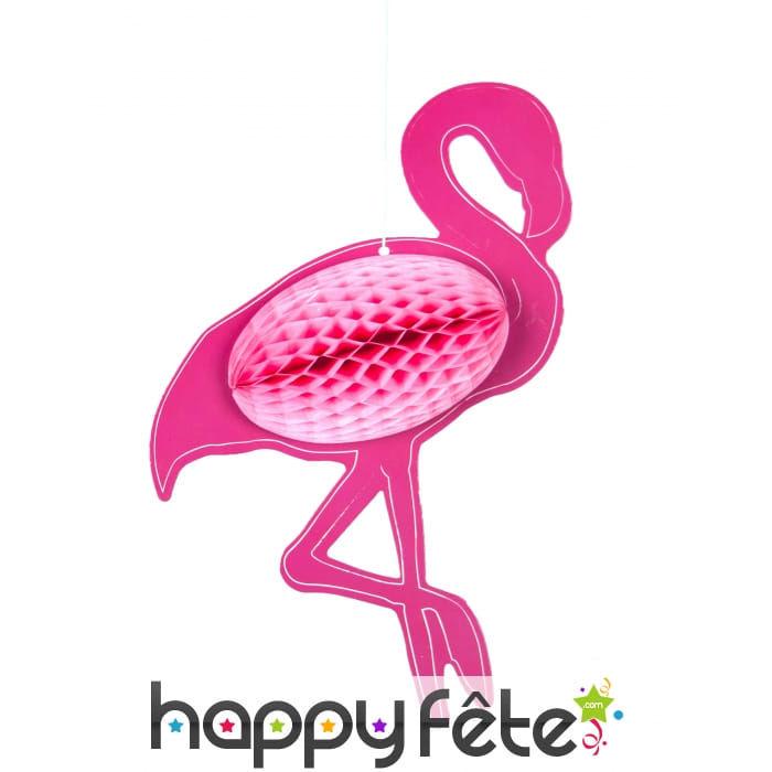 Il s'agit d'une décoration représentant la silhouette d'un joli flamant rose doté d'un ventre en papier alvéolé qui en assure le côté 3D.