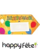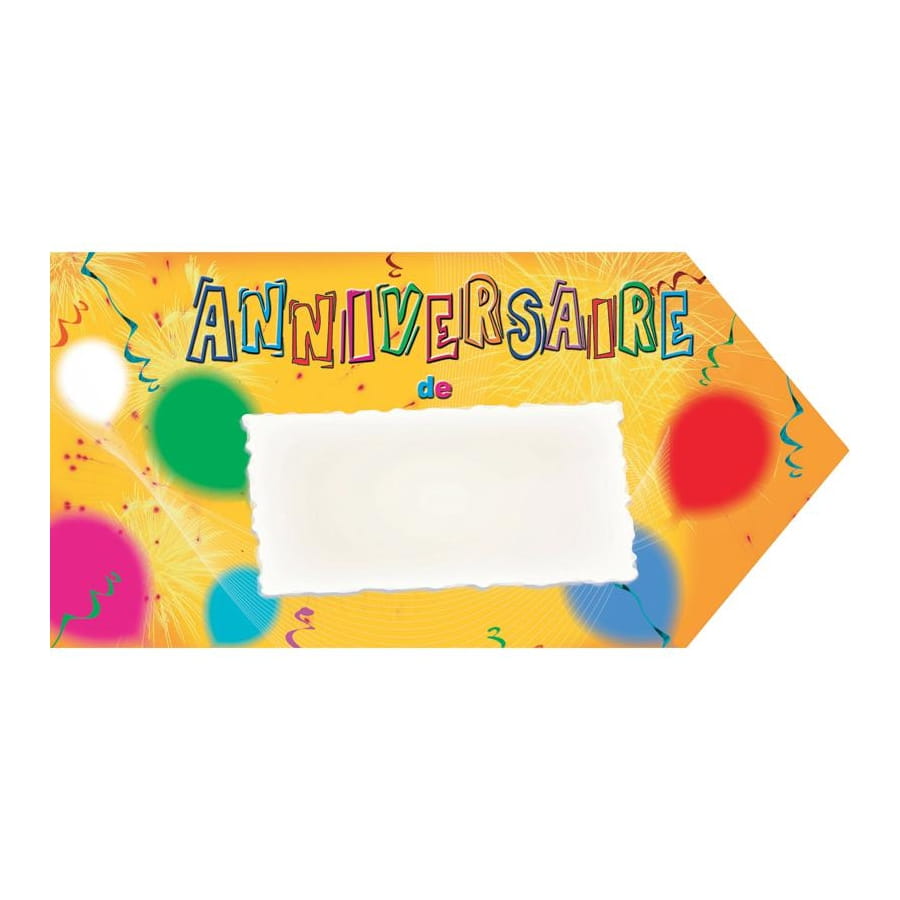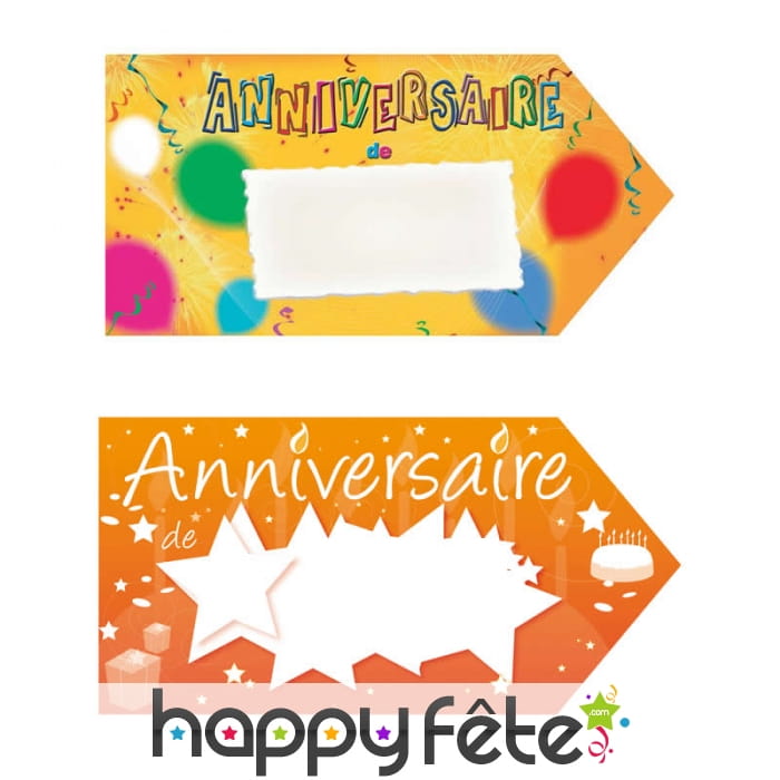 Pour que tous vos invités soient présent pour votre anniversaire, cette flèche d'indication vous servira. De couleur jaune avec écrit dessus ' Anniversaire de..' imprimé sur les deux faces, elle fait 20 cm de long et 40 cm de large. La flèche d'indication est jaune avec des petits points et gâteaux multicolores dessus.