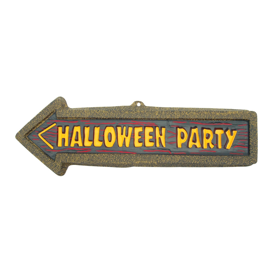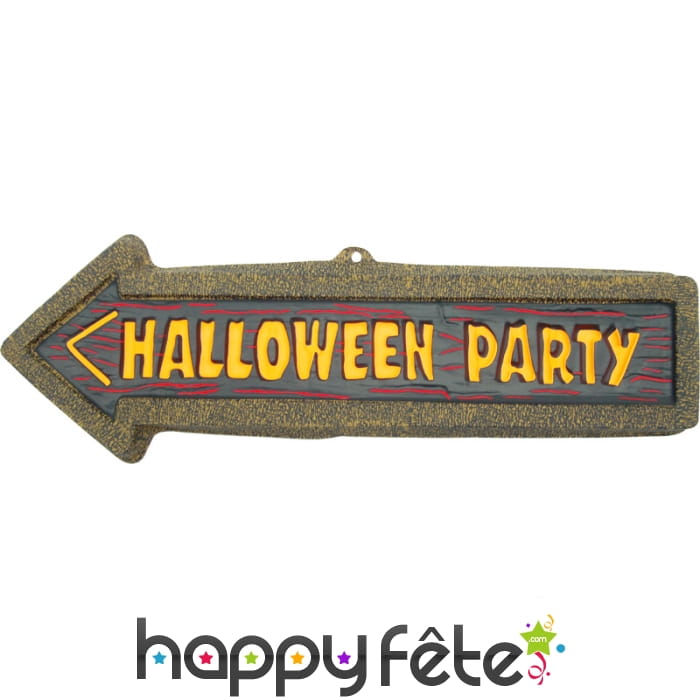 Cette plaque est un moyen idéal d'indiquer à vos invités le chemin à suivre pour se rendre à votre fête. La plaque est en forme de flèche, avec une inscription "Halloween Party" de couleur jaune gravée dessus. Elle mesure 57 centimètres de long sur 19 de haut.