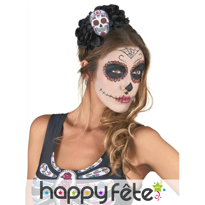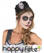 Pour le prochain halloween, agrémentez votre coiffure de cette fleur et crâne Dia De Los Muertos sur serre tête.