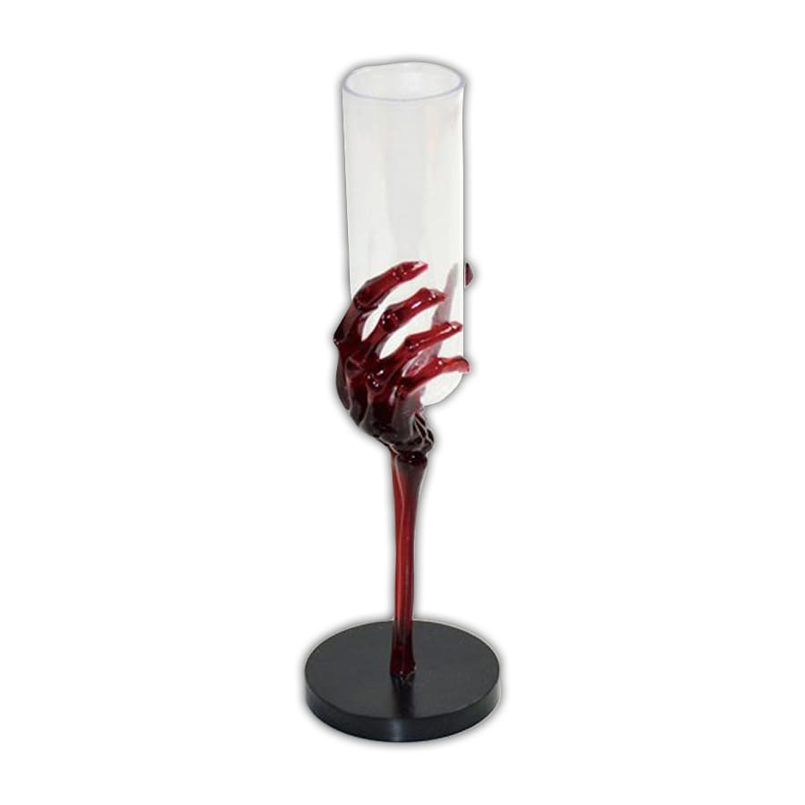 Cette pied main squelette rouge est transparente, mesurant 21 cm de hauteur.