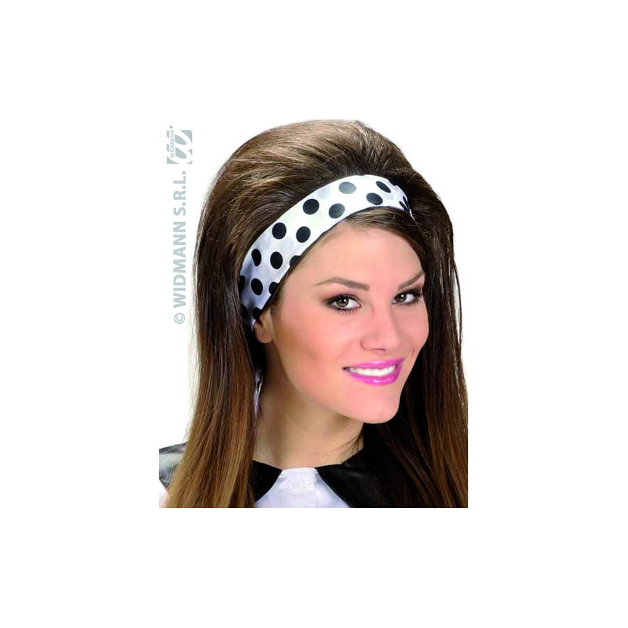 Foulard de couleur blanche en satin avec motifs à pois noirs. Cet accessoire est idéal pour une soirée basée sur le thème du film Grease ou pour vous déguiser en star de cinéma des années 70-80.