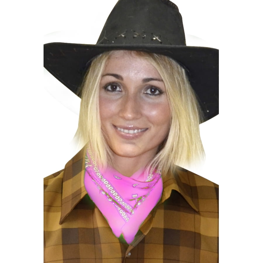 Bandana de couleur rose, pour femme. Cet accessoire est entièrement fabriqué en coton et est très agréable à porter autour du cou ou de la tête comme accessoire de personnage country ou western ou encore, pour compléter une tenue basée sur les années 70.