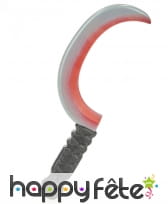 C'est un accessoire qui présente des traces de faux sang sur toute sa surface, pour évoquer l'outil macabre d'un serial killer complètement fou.