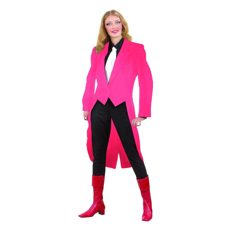 Dans ce frac en gabardine en queue de pie vous aurez l'effet d'une magicienne ou une meneuse vous pourrez aussi incarner une danseuse disponible en 38/40, 42/44 et 46/48. En couleur rose, en manche longue, il est egalement disponible en noir, bordeaux, gris clair, bleu ciel, vert, rose, rouge et blanc rayé.
