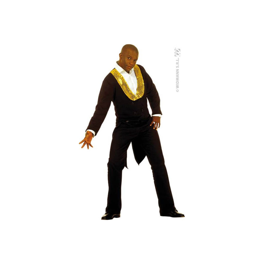 Frac pour homme avec col parsemé de paillettes. Cet accessoire est parfait pour compléter un déguisement de magicien avec un peu de glamour. Lors de la commande, vous ne pourrez choisir ni le modèle ni la couleur de l'accessoire. Vous le recevrez en argent ou doré.