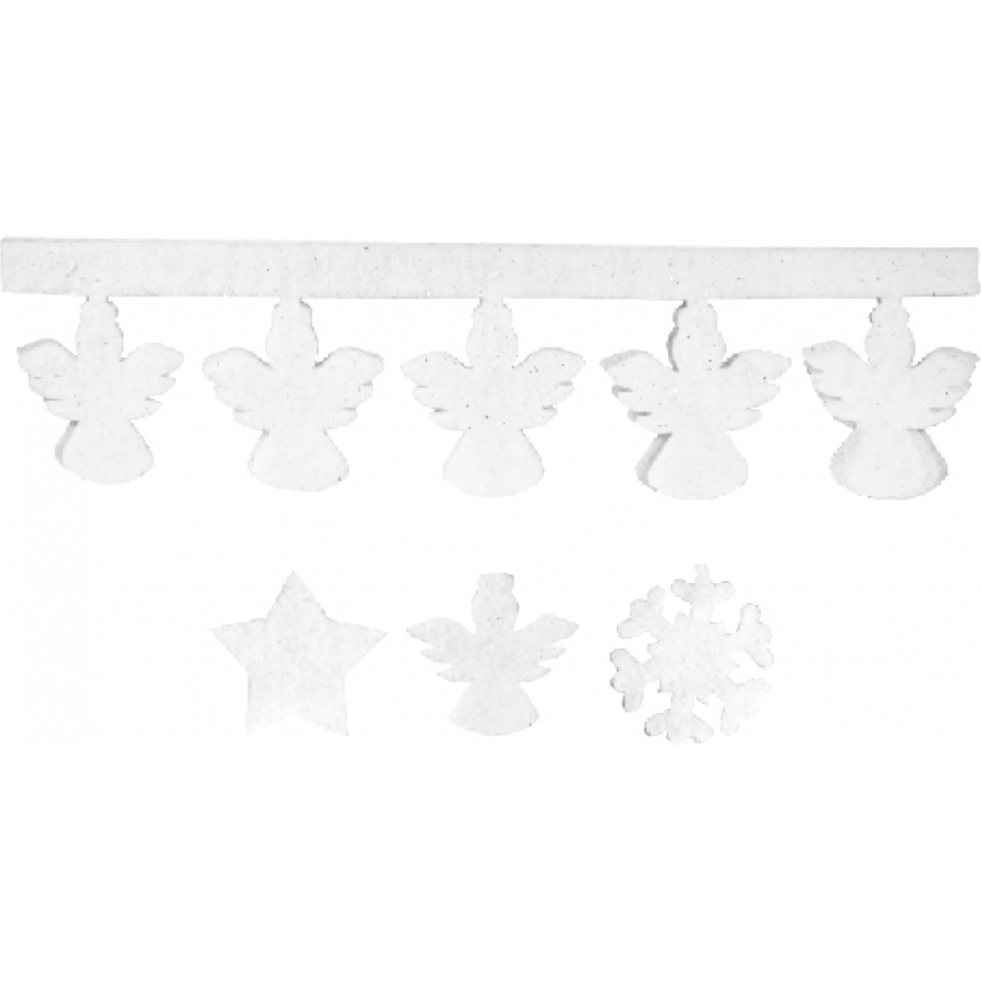 Frise de Noël de couleur blanche avec paillettes argentées. Il existe 5 modèles de frise: glaçons, bonhommes de neige, sapins, anges ou étoiles. Chacune d'entre elles mesure 15 centimètres de large sur 180 centimètres de longueur et sont entièrement en polyester. Au moment de votre commande, vous ne pourrez choisir ni le modèle ni la couleur que vous souhaitez et recevrez une des frises disponibles.