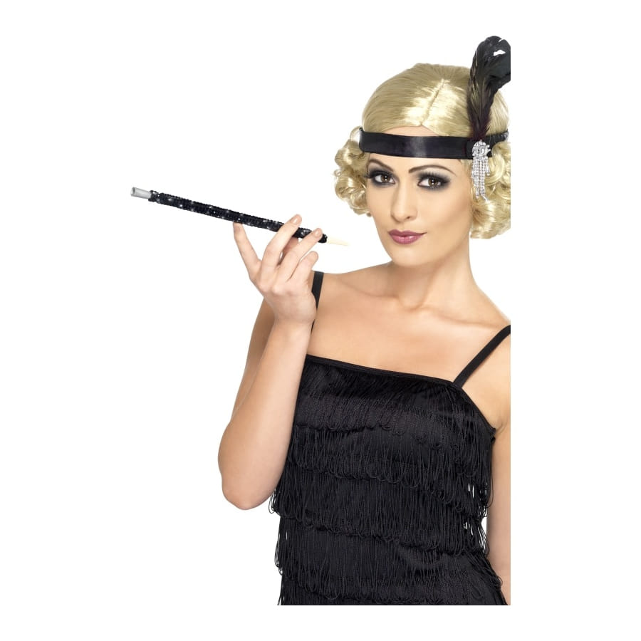 Long fume-cigarette recouvert de séquins de couleur noire, pour femme. Ajoutez cet accessoire à votre déguisement pour compléter un look parfait de femme classe et élégante des années Charleston.