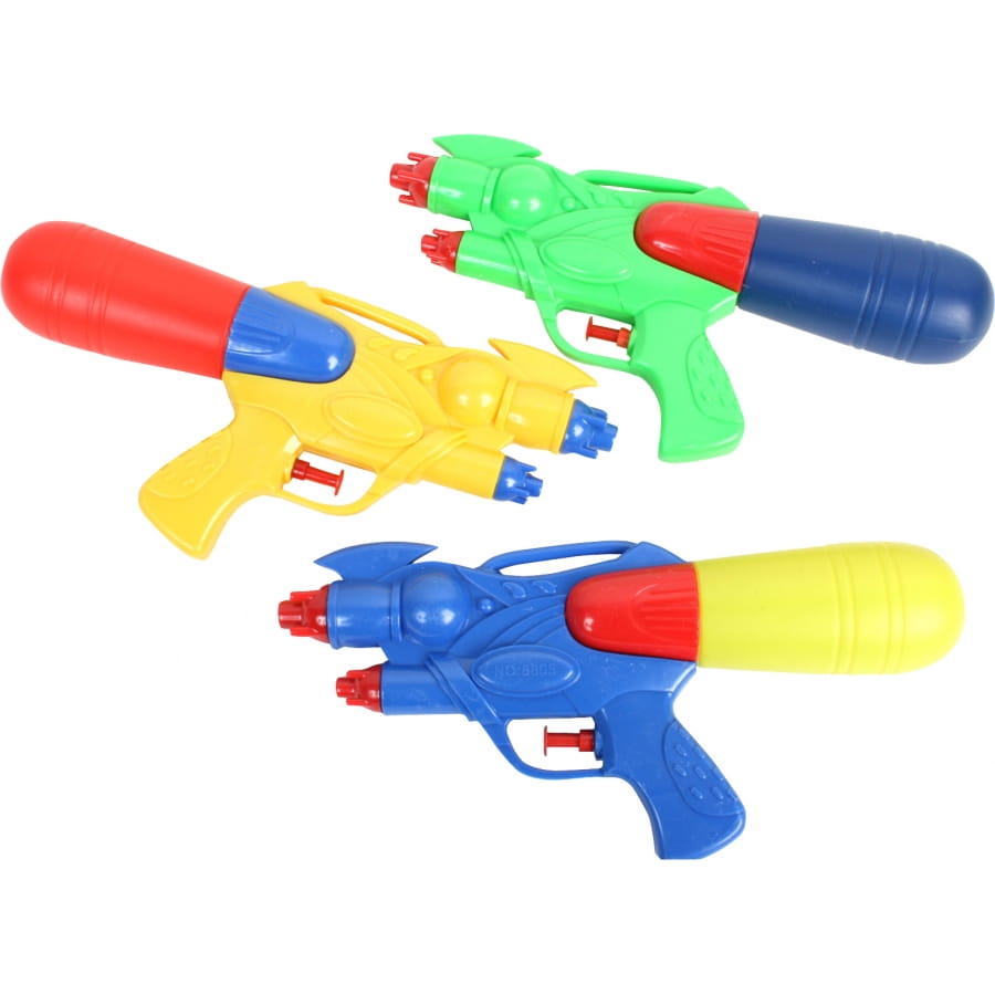 Un fusil à eau double jets de 23 centimètre elle peut être de couleur bleu, jaune ou vert. Il y a un double jet ainsi l'eau sort a deux endroits. Votre enfant pourra s'en servir avec ses amis ou vous pouvez vous en servir entre amis pour faire une belle partie.