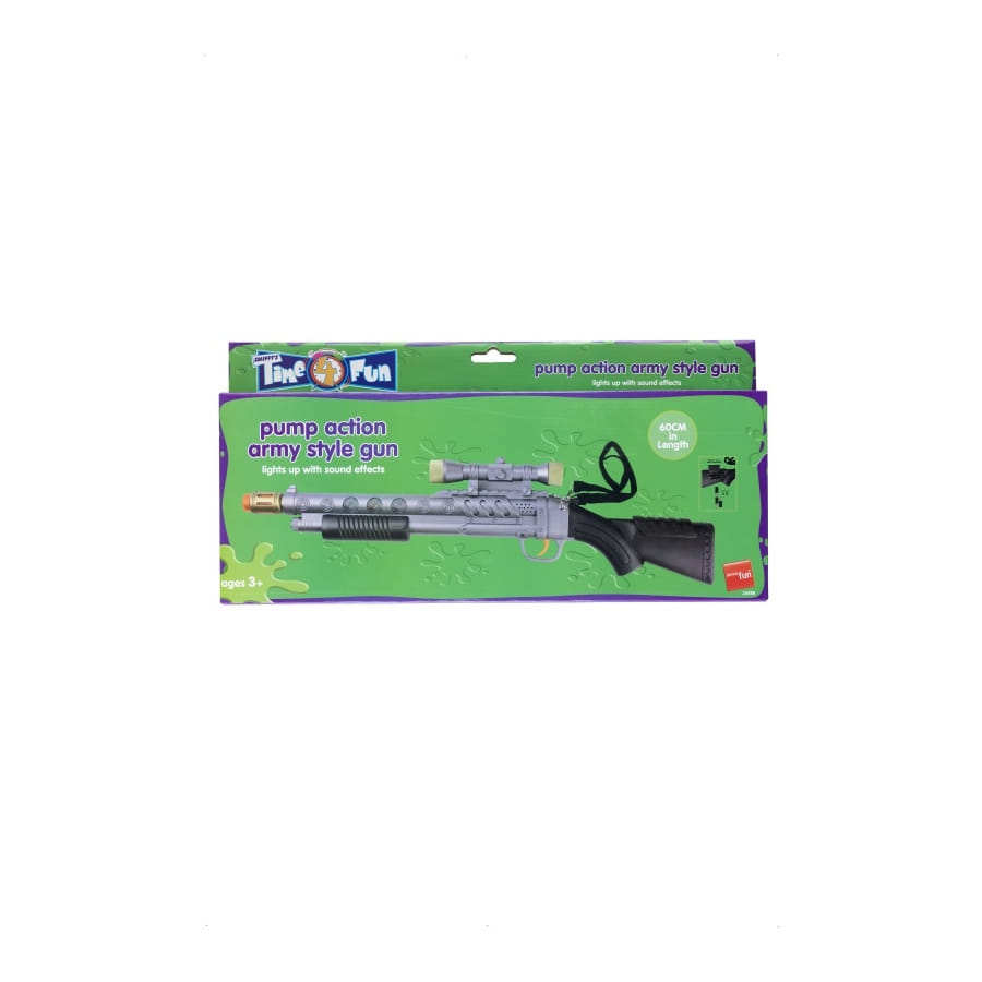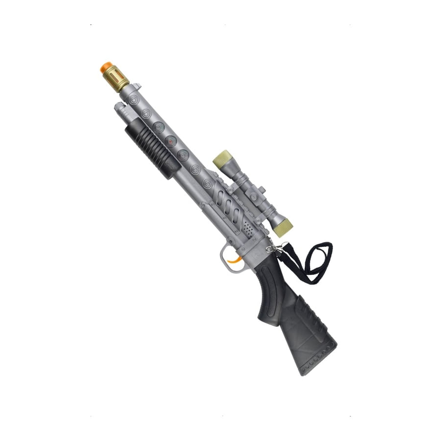 Vos enfants auront besoin de cet accessoire pour incarner un méchant ou encore pour un gouter d'anniversaire pourquoi ne pas offrir ce fusil à pompe à un garçon. Ce fusil sniper est de couleur gris et noir. Il fait de la lumière et du bruit. Il est conseillé aux enfants de plus de trois ans.