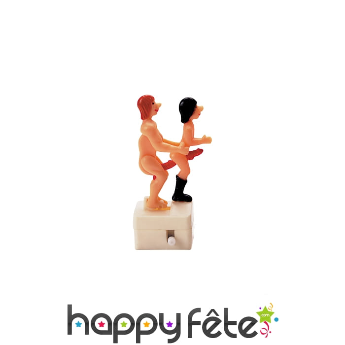 Gadget représentant un couple mécanique homosexuel "nique-nique par derrière". Remontez-le et il vous montrera comment faire! Ce gadget fera éclater de rire vos amis lors d'un enterrement de vie de célibataire. Vente interdite aux mineurs.