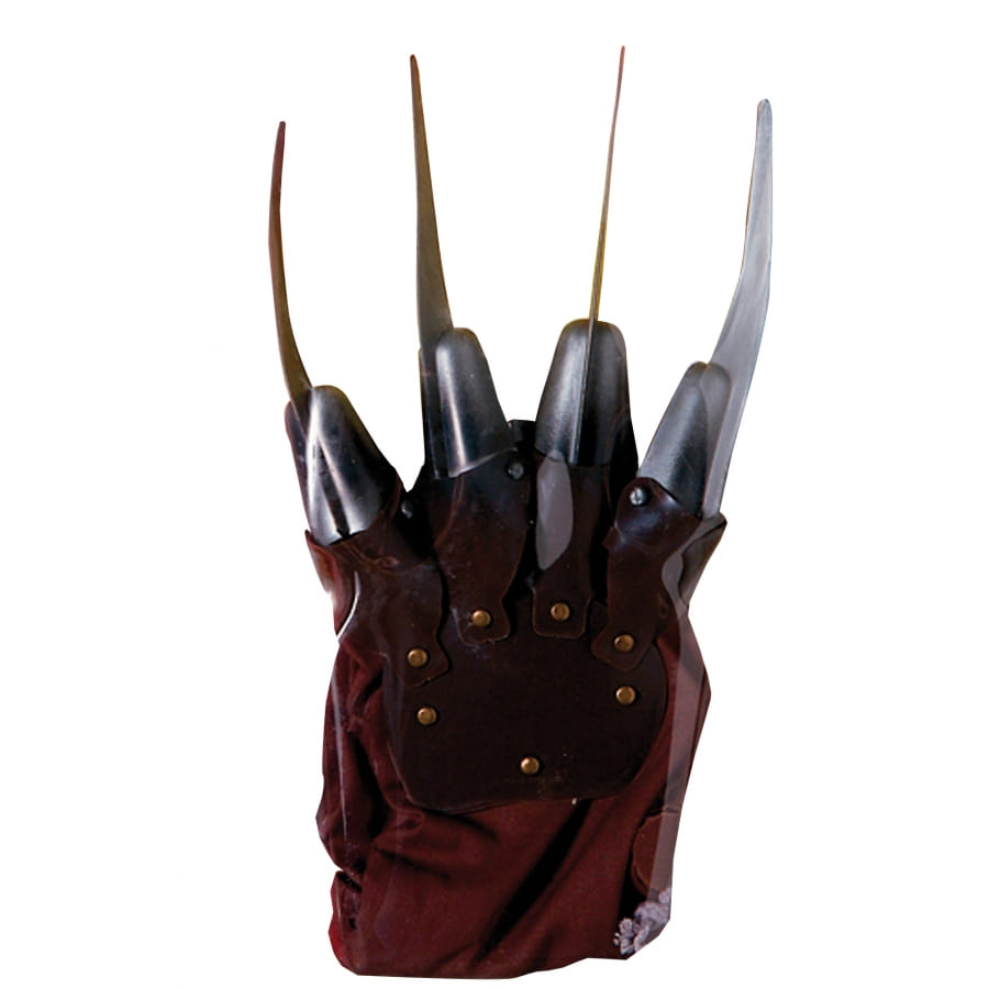 Le gant de Freddy Krueger articulé correspond à un accessoire pour compléter un costume d'halloween s'inspirant de ce personnage de film d'horreur. Ce gant sous le thème Freddy Krueger, peut être porté aussi bien par les hommes que les femmes. Il se présente sous forme d'un gant conçu dans un tissu marron. Au bout de chaque doigt se trouve une lame grise imitant l'acier et maintenu par une matière à l'aspect de cuir.
