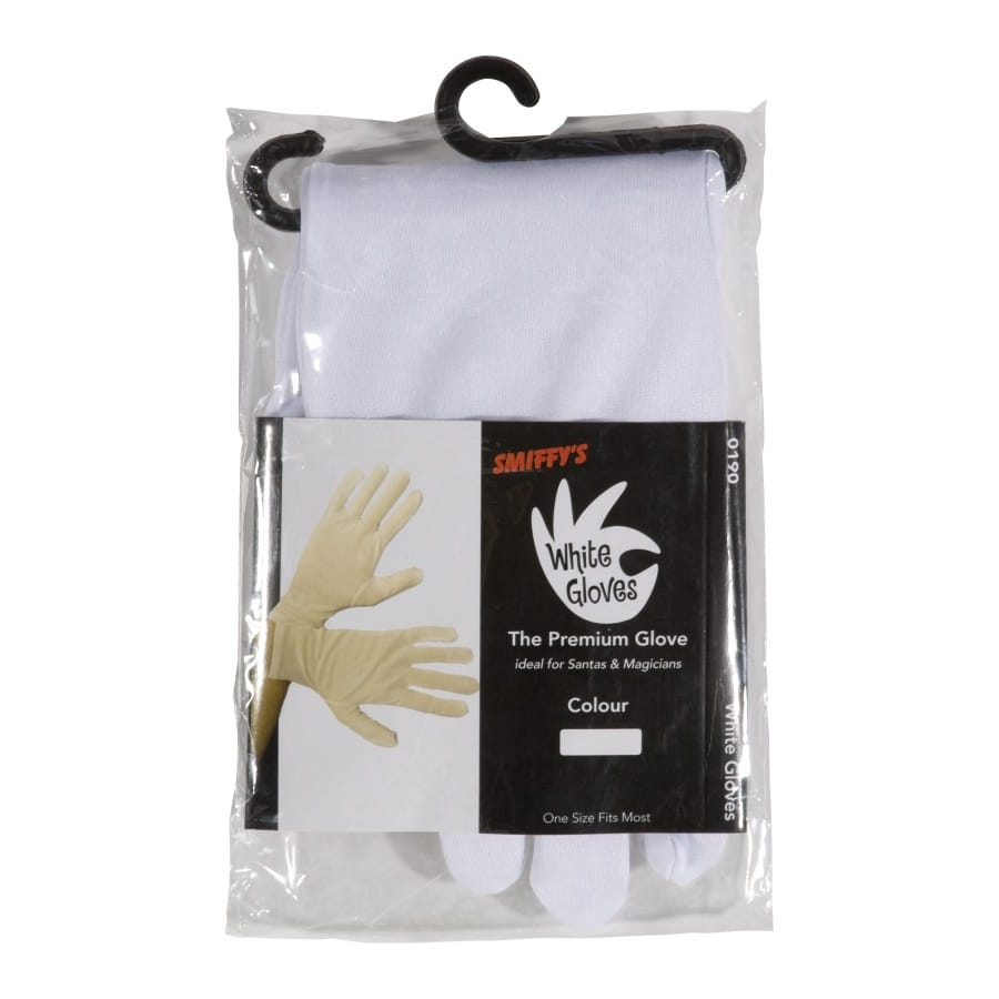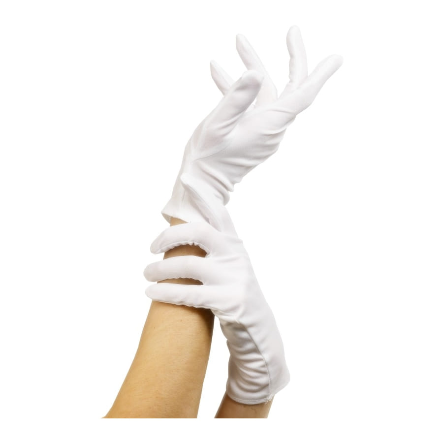 Paire de gants de couleur blanche, en polyester, pour femme. Ces gants iront très bien à un déguisement de magicienne, de danseuse ou tout simplement pour ajouter une touche chic à votre déguisement.