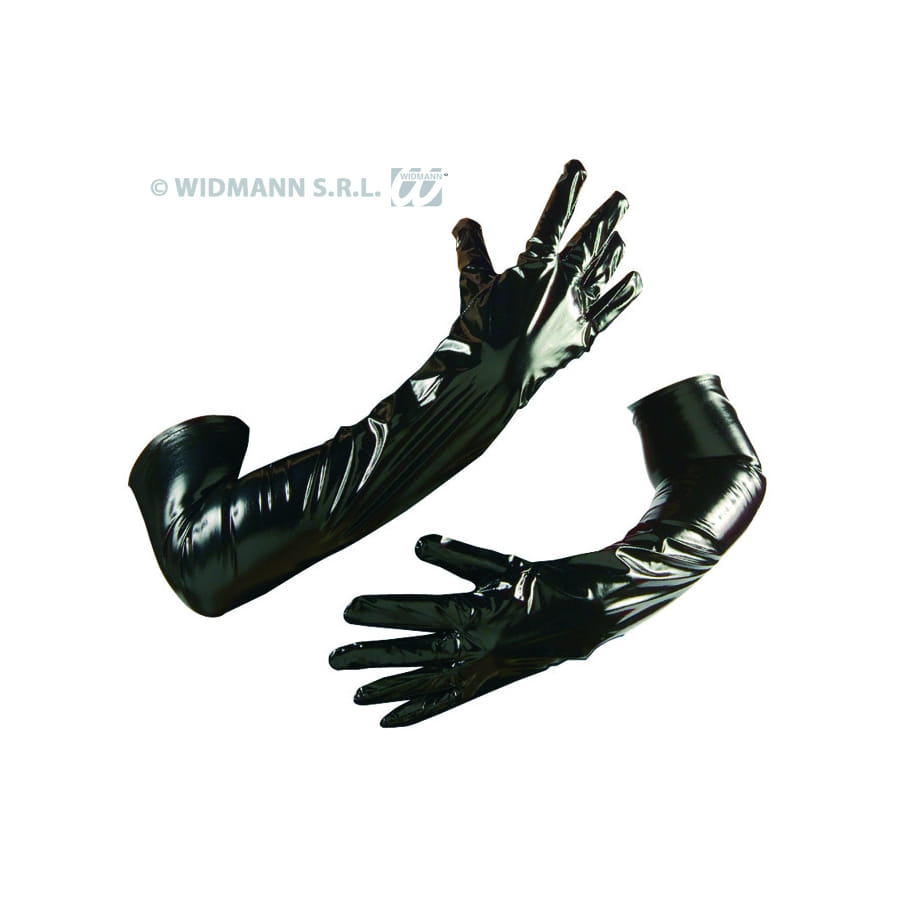 Paire de gants noirs sexy en vinyle. Les gants mesurent 56 centimètres. Ils sont parfaits pour un déguisement de Drag Queen ou de séductrice.