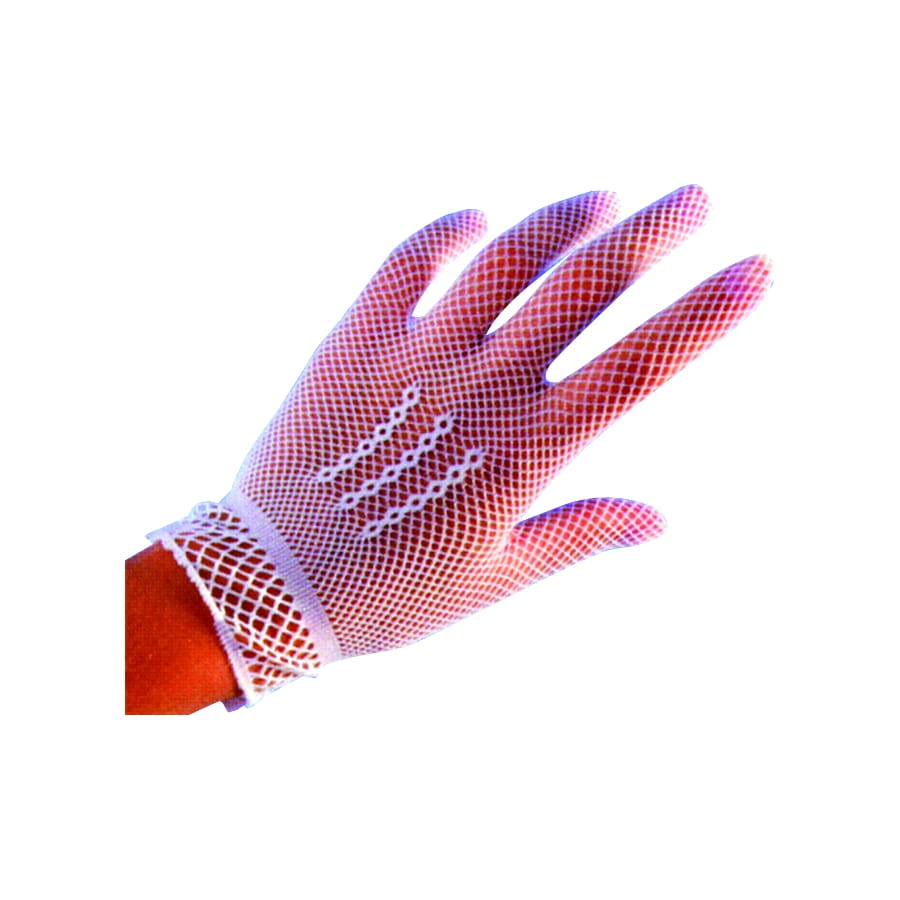 Paire de gants courts en filet de couleur blanche. Les gants sont de 22 centimètres de long. Ils sont idéaux pour compléter une tenue de mariée.