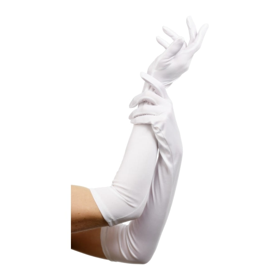 Mesdames cette paire de gants est exactement ce que vous aurez besoin pour donner une touche de glamour et d'élégance à votre déguisement. Cette paire de gant en jersey est de couleur blanc, vous pourrez le porter pour une fête comme pour le nouvel an, la noël ou un mariage.