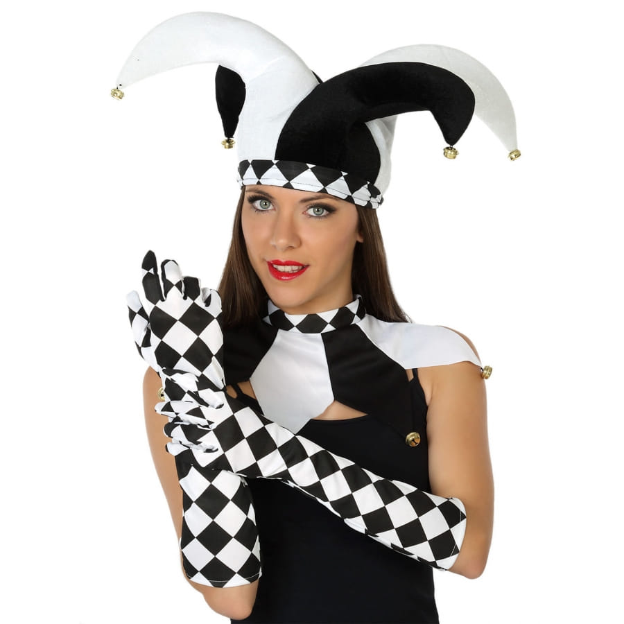 Mettez la touche finale à un costume de bouffon grâce ces gants mi-longs arlequin blanc noir.