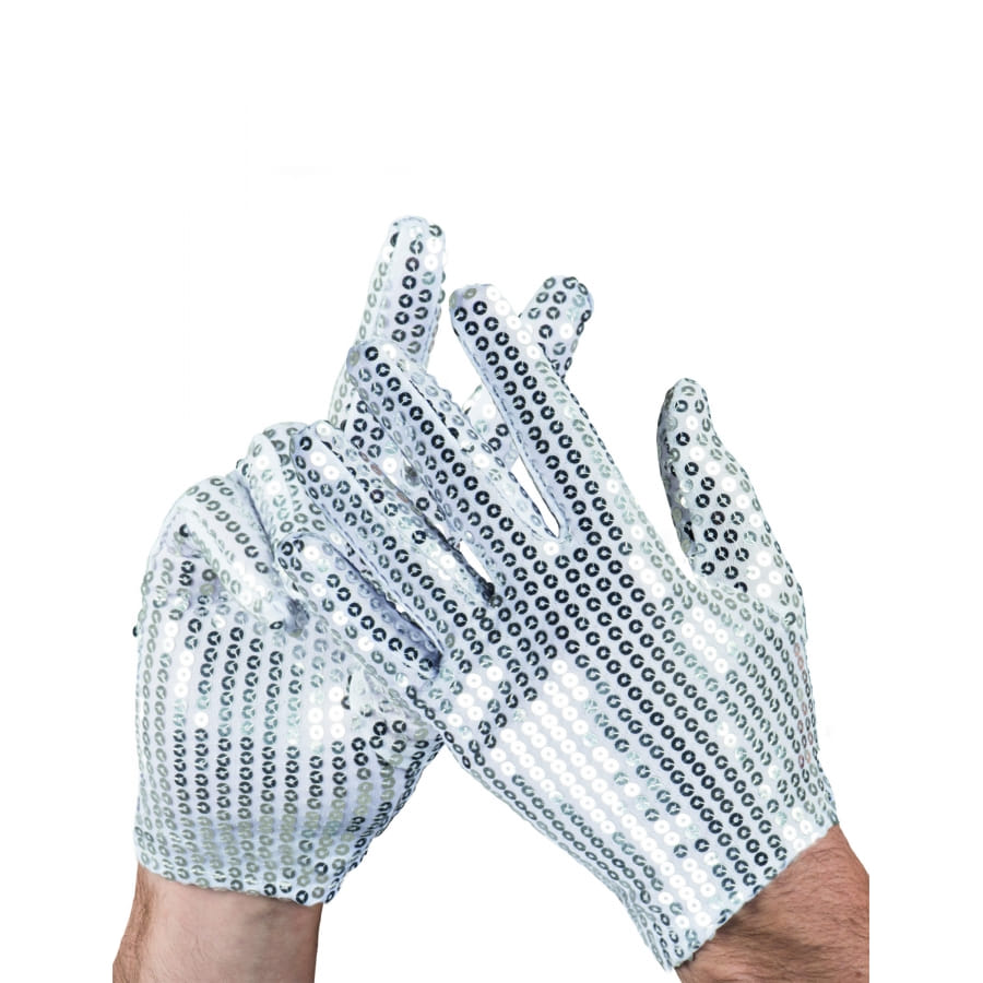 Ces gants en tissu blanc et recouverts de sequins argentés feront parfaitement l'affaire.