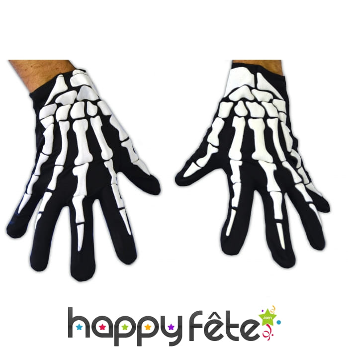 Les déguisements de squelette sont très prisés à Halloween ! Afin de mieux incarner le rôle d'un tas d'os ambulant, optez pour cette paire de gants sensationnelle. Il s'agit d'un modèle pour adulte de couleur noire, avec les phalanges représentées en blanc. En bref, ces gants offrent un aspect squelettique très réaliste de vos mains ! Vous n'aurez aucun mal à trouver les idées qui vont avec !