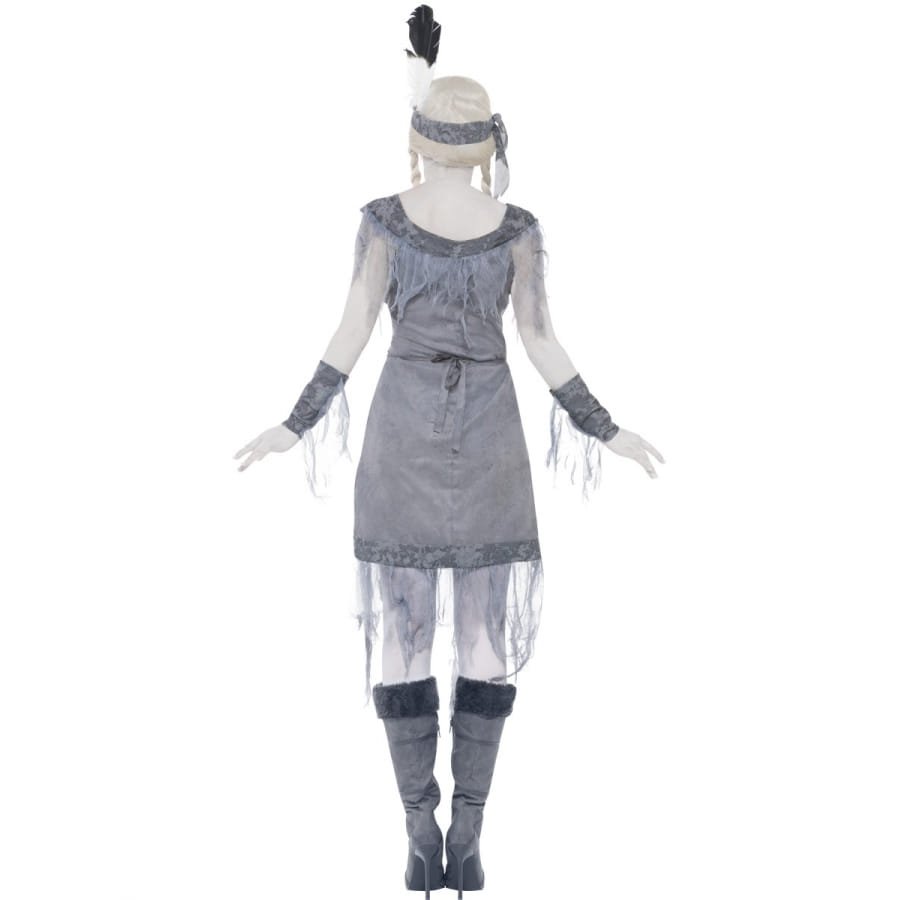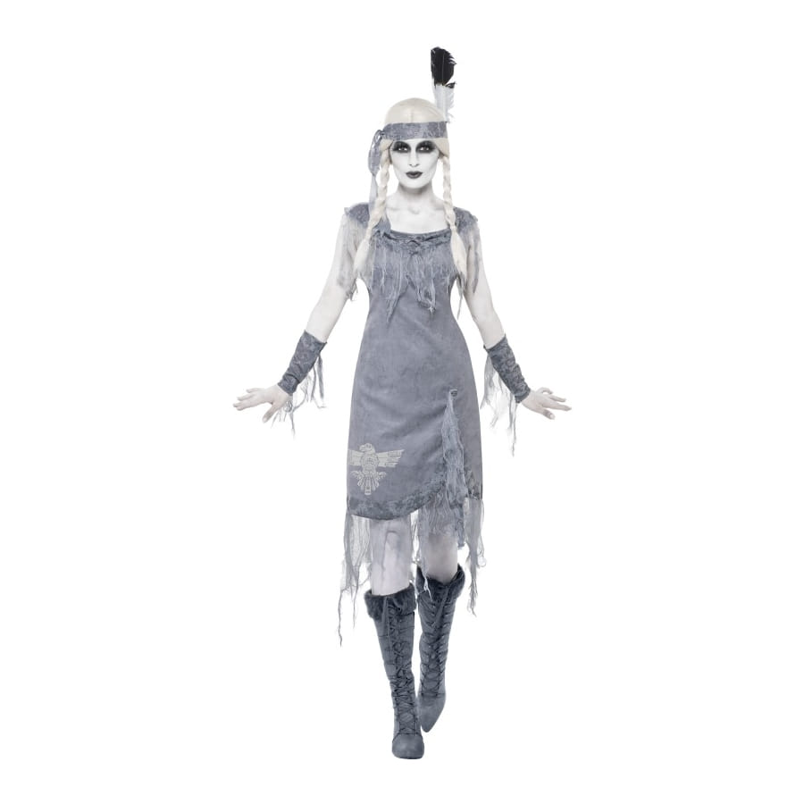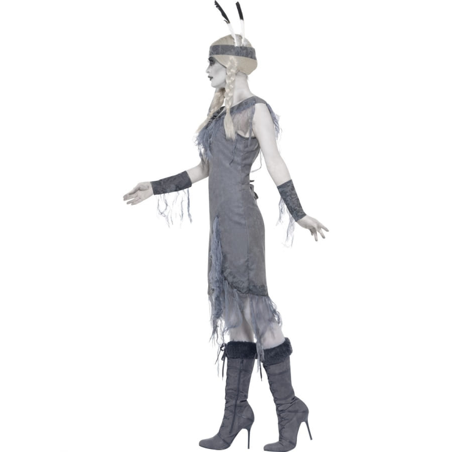 Ce déguisement d'indienne vous pourrez le porter pour Halloween ou une autre fête sur le thème de l'horreur. Ce déguisement de princesse indienne fantôme est composé d'une robe grise avec frange, la robe est sans manche ainsi que d'un bandeau gris et de brassard.