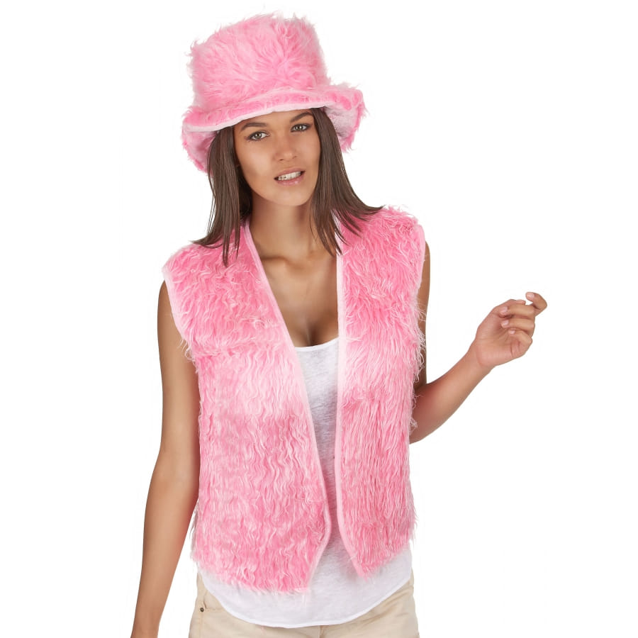 Le gilet rose en peluche est destiné aux femmes.
