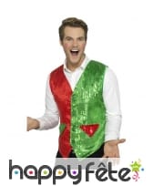 Pour la Saint-Patrick où il faut se vêtir de vert, ce gilet vert à sequins pour homme vous sera fort pratique ! Cet accessoire vous confèrera beaucoup d'élégance, Messieurs, juste porté avec une chemise noire et un pantalon noir. Mais pour enjoliver encore plus votre tenue, nous vous suggérons un petit noeud, un chapeau et une canne, que nous vous proposons sur Happyfete.